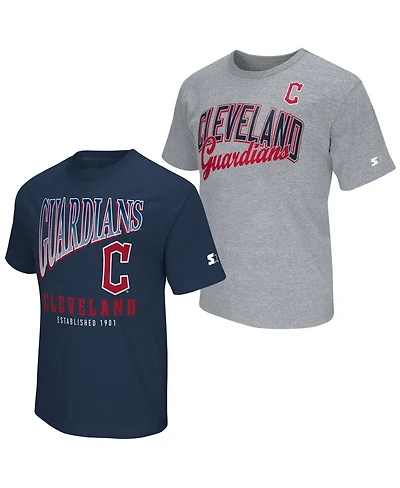 Starter Men's 2-Pack Navy/Heather Gray Cleveland Guardians T-Shirt Set