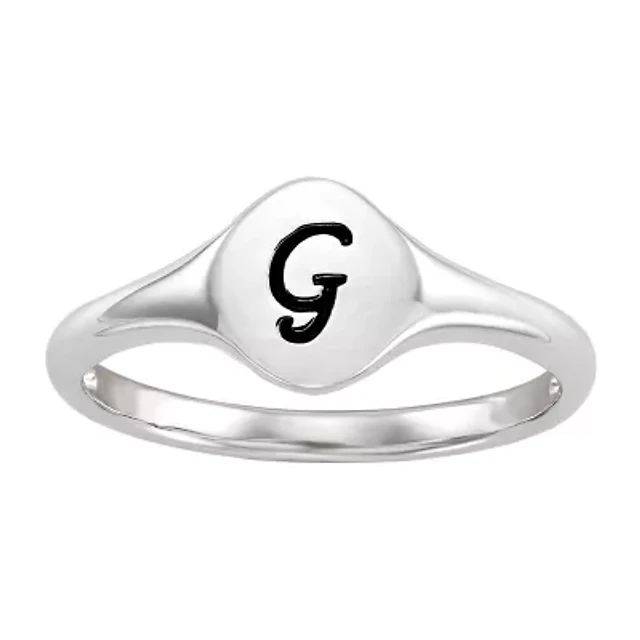 Initial Womens Sterling Silver Signet Ring