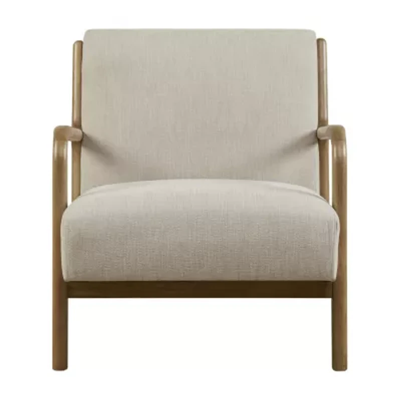Introduce a simple and clean look to your home with the Ink+Ivy Novak lounge chair. Flaunting a sharp and classic design, this chair is upholstered in a textured fabric that is complemented by elm wood finish frame for a warm and natural allure. Transform your living room into a cozy and comfortable place with this mid century inspired accent chair.