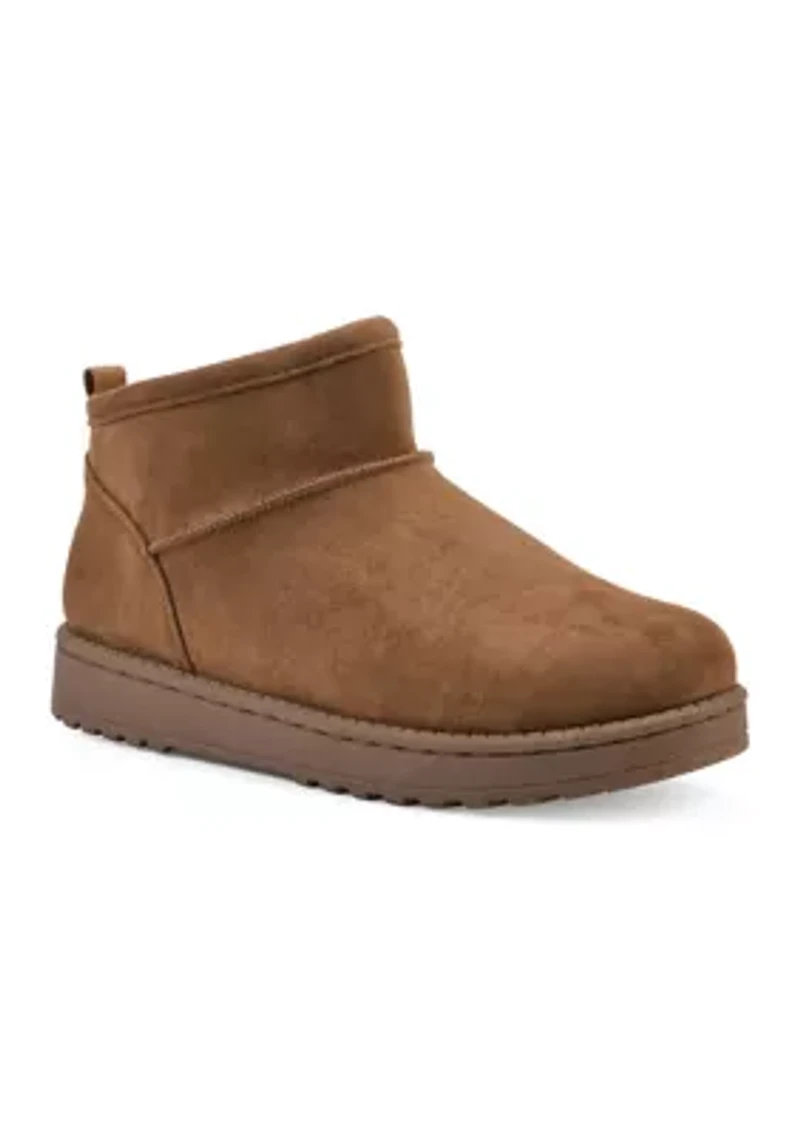 Introducing our cozy yet chic Inspa bootie from White Mountain Shoes. Treated with 3M Scotchgard™ for enhanced resistance to water and stains, this faux fur-lined bootie is perfect for the winter months. Featuring a lug outsole and cushioned insole, it delivers comfort with every step. The low shaft design makes it ideal whether you're lounging at home or heading out for a casual outing—the Inspa bootie keeps your feet snug and stylish all day long. Slip-on Padded insole China Imported Product Specifications 1" heel 0.75" platform height 3" shaft height 13" calf circumference Medium width Material Lining and Outsole: synthetic Fabric