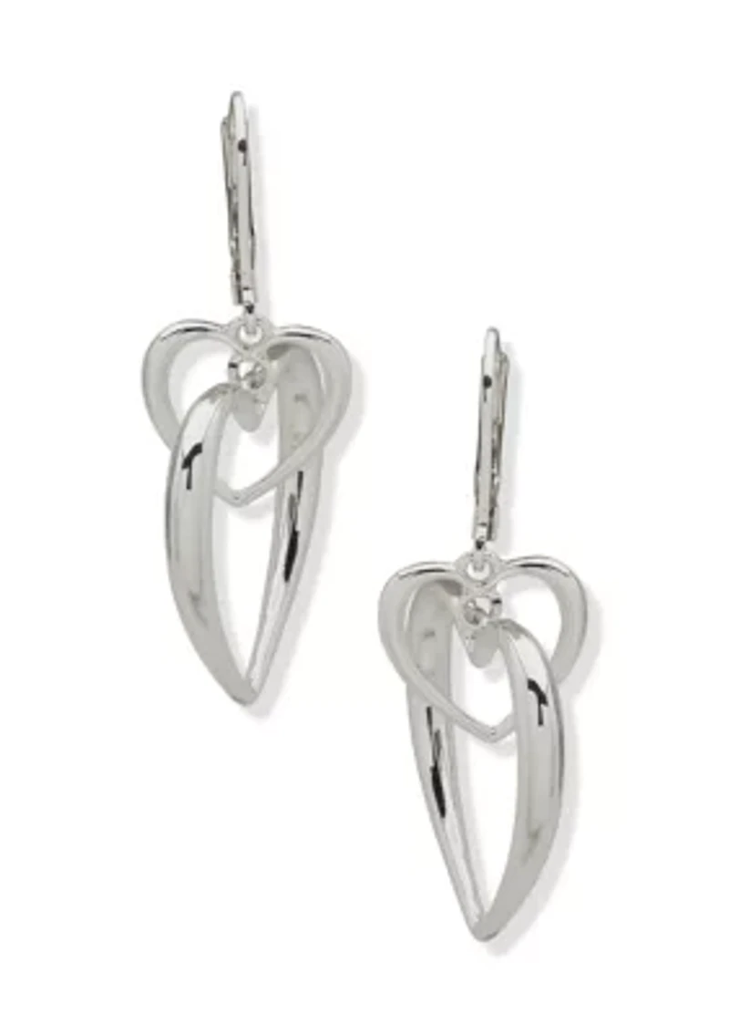 These lovely Nine West drop earrings are perfect for elevating any outfit. Showcasing a delicate interlock heart design, they bring a lovely touch of romance and sophistication. The leverback closure ensures a secure and comfortable fit, making them ideal for all-day wear. 2-piece set Leverback Polished finish Imported Material & Care Metal, silver-tone metal Clean with a soft cloth
