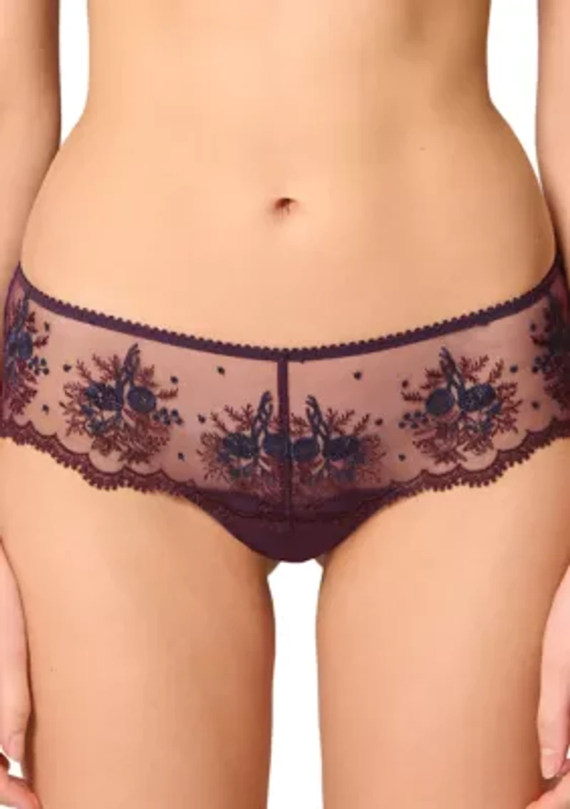 Feminine and flattering, this Simone Perele low-rise boyshort features floral embroidery on sheer tulle in the front and a seamless folded tulle back for a smooth, invisible finish under clothing. Decorative elastic waistband Imported Material & Care Nylon, elastane, polyester; 100% cotton gusset Hand wash