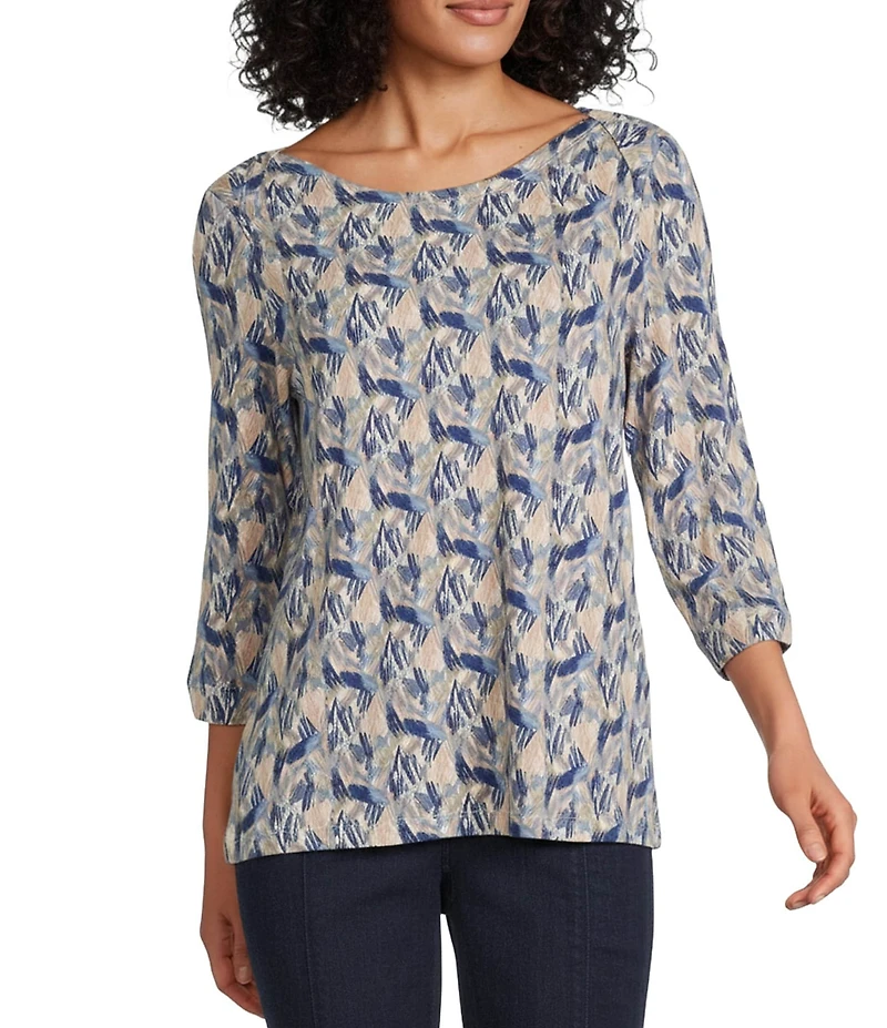 Intro Petite Size Knit Jersey Classic Khaki Abstract Print Boat Neck 3/4 Sleeve Tee in Franklin, TN