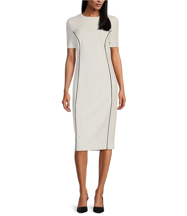 Investments Scuba Crepe Short Sleeve Contrast Piping Sheath Dress