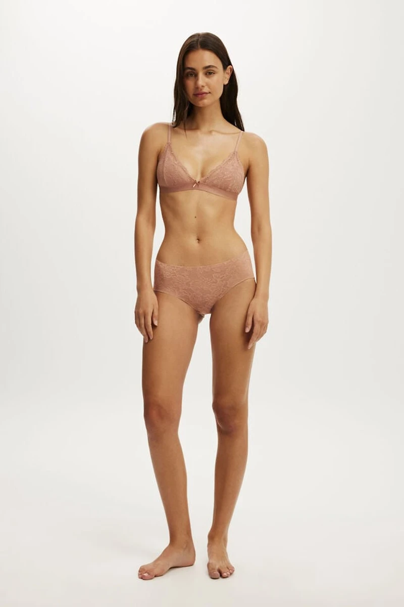 The one you'll reach for again and again. Full coverage boyleg brief with raw cut edges for no show, no dig. Sleek, lightweight lace with a cotton gusset. Comfort sorted.