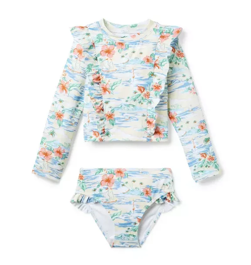 Island Floral Ruffle Rash Guard Swimsuit