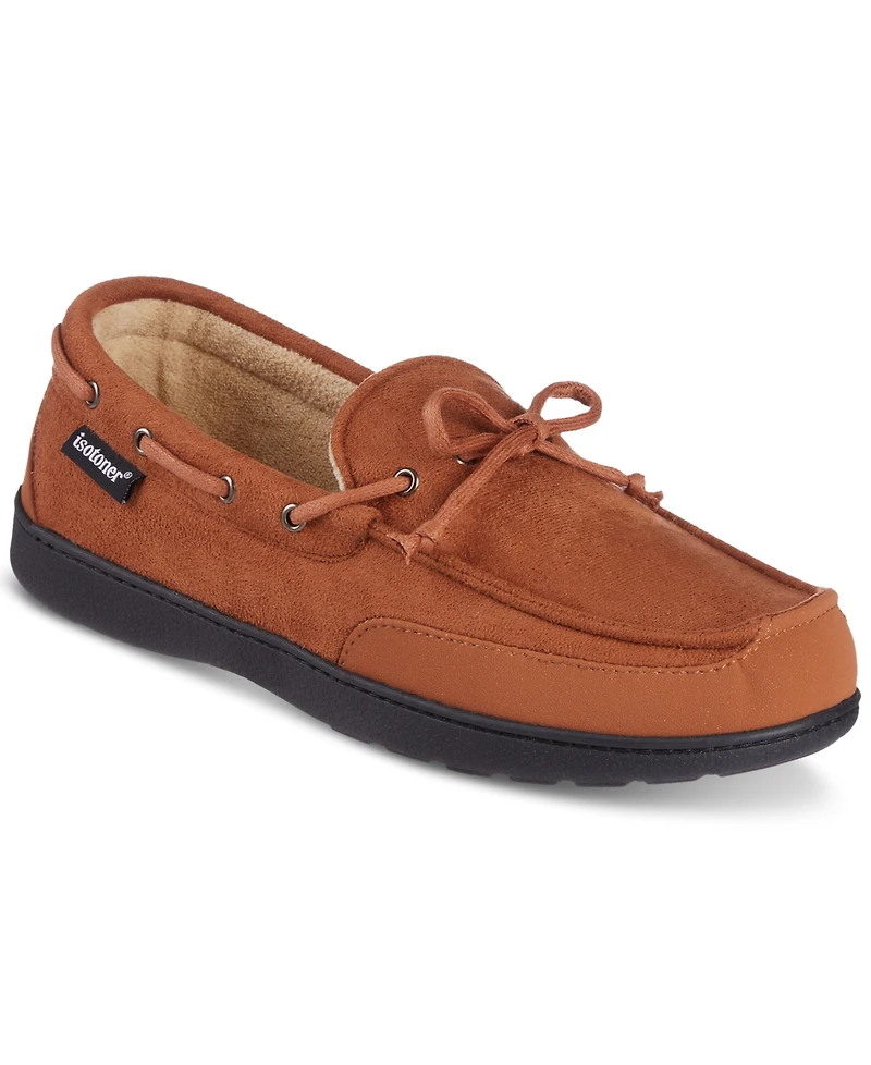 Isotoner Men's Water Repellent Microsuede Carter Boater Moccasin Slipper with Memory Foam