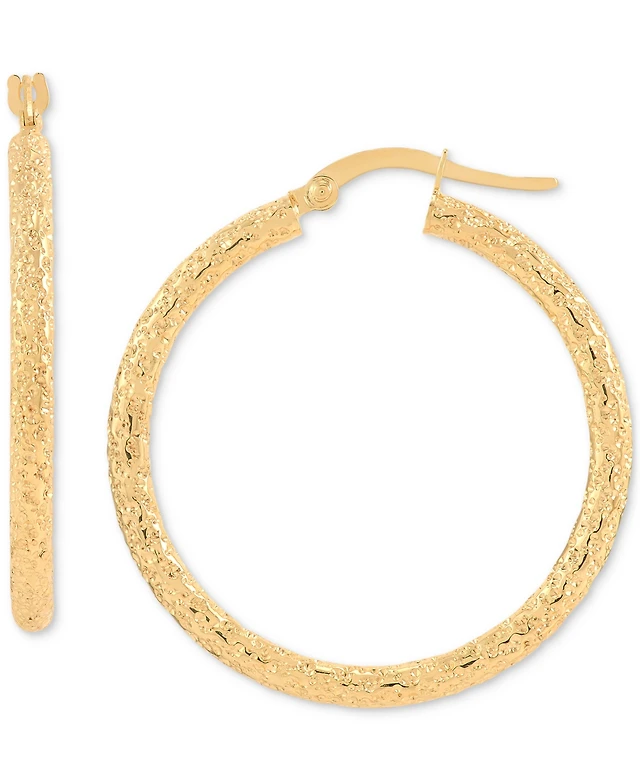 Italian Gold Medium Textured Hoop Earrings in 14k Gold