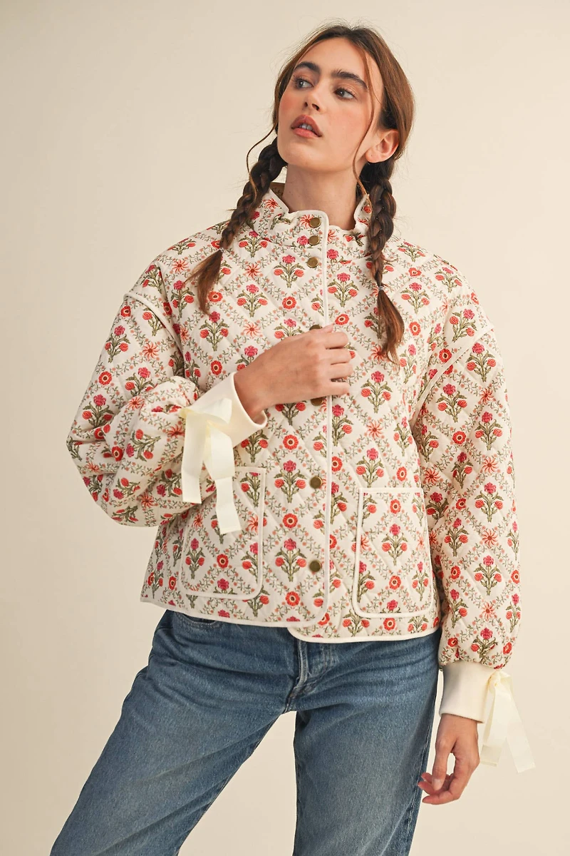 Ivory Floral Quilted Jacket With Ribbon Detail in Franklin, TN