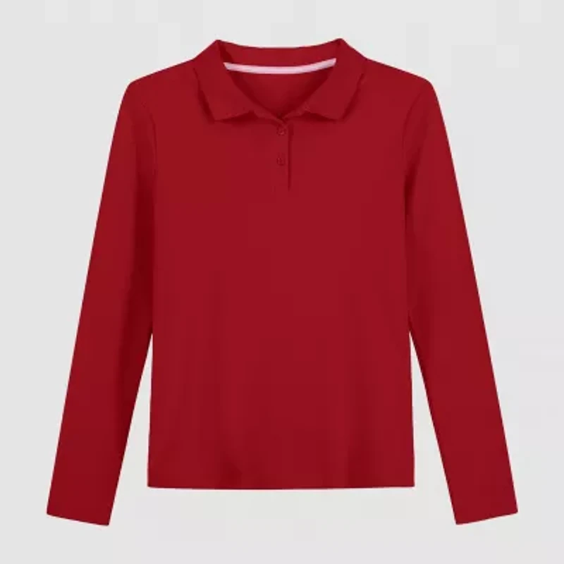 IZOD Little & Big Kid Girls Long Sleeve Regular Fit Stretch Fabric Polo Shirt