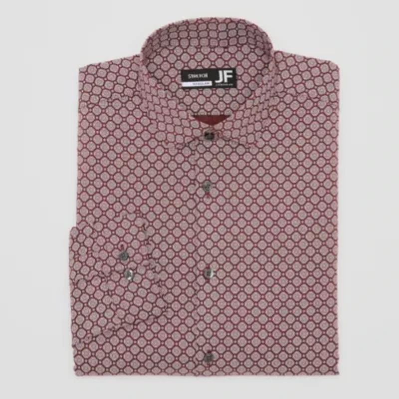 This J. Ferrar men's button-down shirt features a unique pattern to amp up your tailored look. Cut for a slim-fit, it's made from a recycled stretch cotton-poplin blend with wrinkle-free properties to keep your look sharp, and features a point collar and long sleeves. Style it with chinos and loafers.