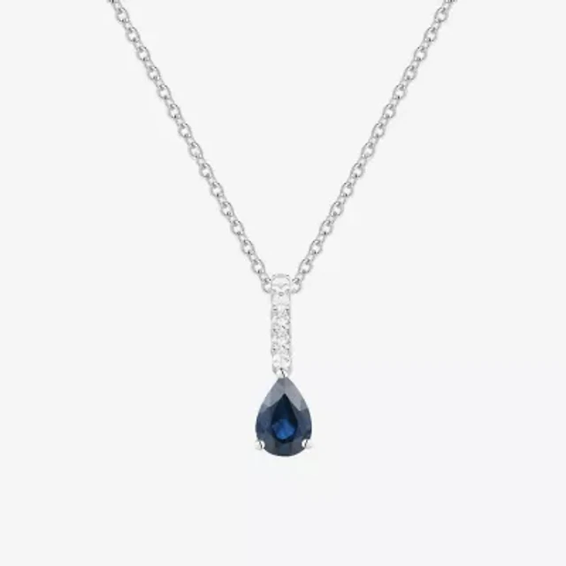 Womens Diamond Accent Lab Created Blue Sapphire 10K Gold Pear 18 Inch Pendant Necklace