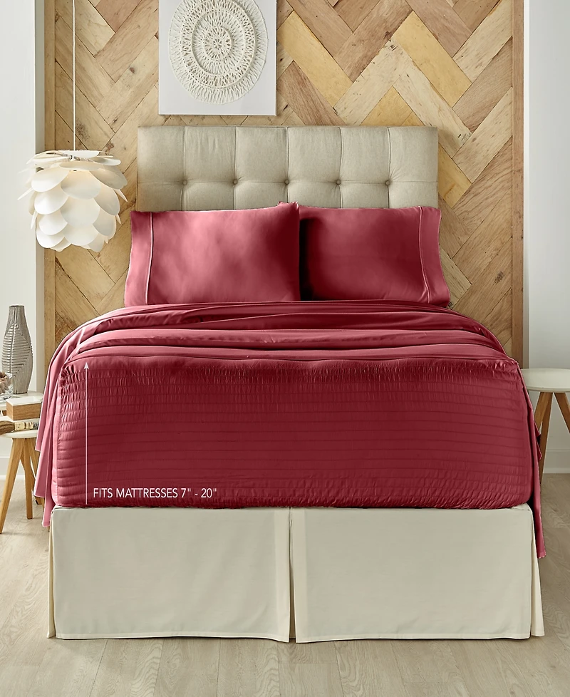 Add a luxurious feel to your bedding with this super soft 4-piece sheet set by J. Queen New York. Featuring Royal Fit Technology, a patented design, which guarantees to fit every mattress perfectly, every time. The unique fitted sheet construction stretches to fit the deepest mattress, mattress toppers, and works great with smaller low-profile mattresses (7"" - 20""). Unlike most fitted sheets that do not fit well or stay in place throughout the night, our fitted sheet solution will never shift or slip-off. The luxuriously soft 300 Thread Count 100% Cotton fabric gives the sheet set a silky-smooth hand-feel, and it is machine-washable. Available in multiple on-trend fashionable colors to fit any bedroom decor. The sheet set includes a flat sheet, fitted sheet, and two pillowcases (one pillowcase in twin set).