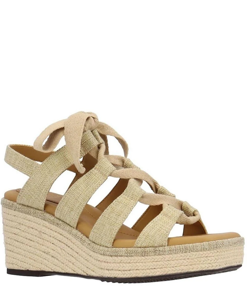 J. Renee Garlynn Linen Lace Up Square Toe Platform Wedge Espadrille Sandals