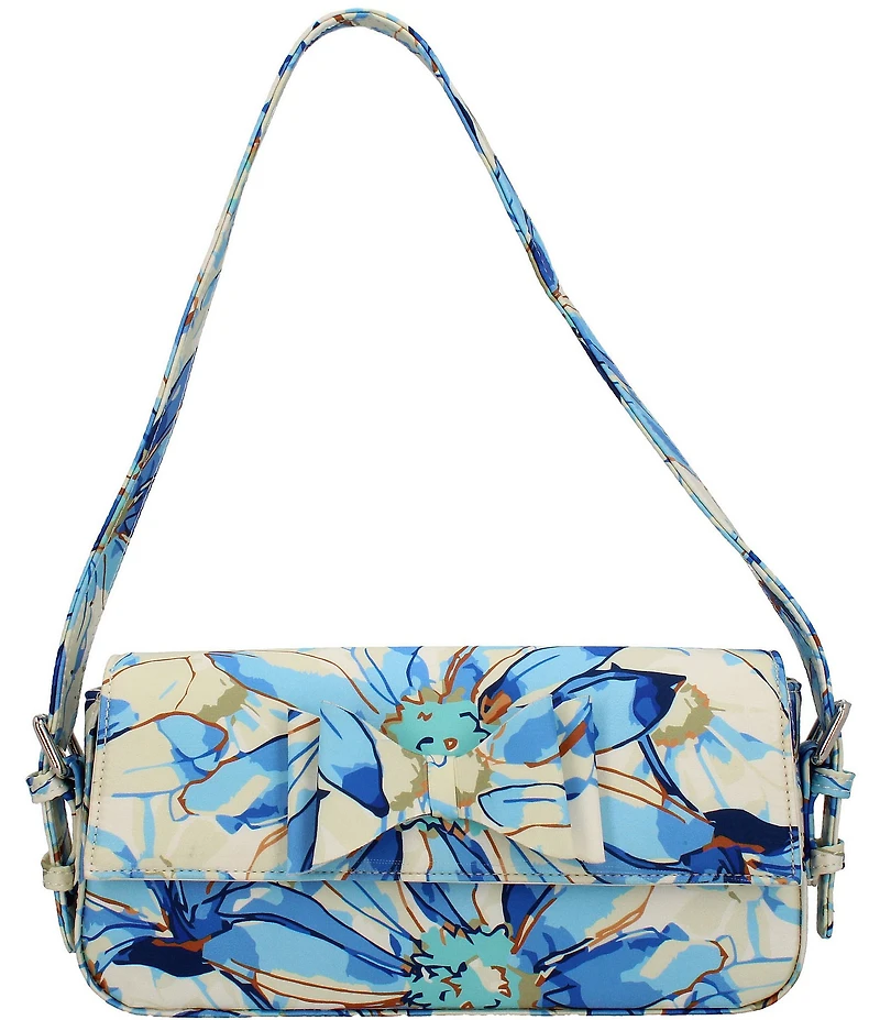 From J. Renee, the Pammie Floral Print Fabric Shoulder Bag features: Fabric upper Magnetic snap closure Lined interior One pocket Approx. 4.5" H x 1.5" W x 10" L Imported.