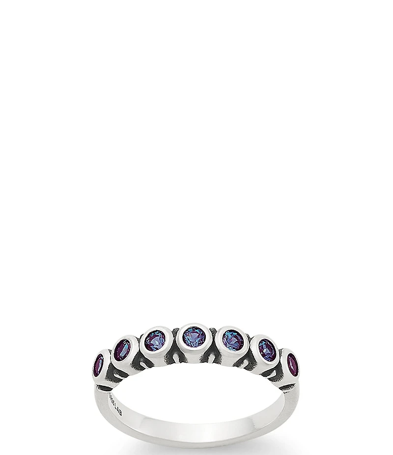 From James Avery, this ring features: Create an even more colorful and meaningful ring stack with these sparkling faceted Birthstone Stacker Rings. Seven round gemstones are highlighted in bezel and prong settings for extra shimmer and shine with each turn of the hand. Available in all 12 birthstones, you can choose a single birth month or a multi color gemstone array for a rainbow look. The sterling silver band is engravable on the inside for a personal message. Wear solo or stack to represent children, grandchildren or you and your significant other. Sterling Silver/Amethyst, Blue Zircon, Citrine, Garnet, Lab-Created Alexandrite, Lab-Created Aqua Spinel, Lab-Created Blue Sapphire, Lab-Created Emerald, Lab-Created Pink Sapphire Lab-Created Ruby, Lab-Created White Sapphire, Multi-Gemstones or Peridot Amethyst, Blue Zircon and Citrine Stones have been heated or irradiated to enhance the color. Avoid direct sunlight or extreme or prolonged heat. Each ring set with seven approx. 2.5mm gemstones Approx. 1/8" W Crafted in America using the world's finest materials.