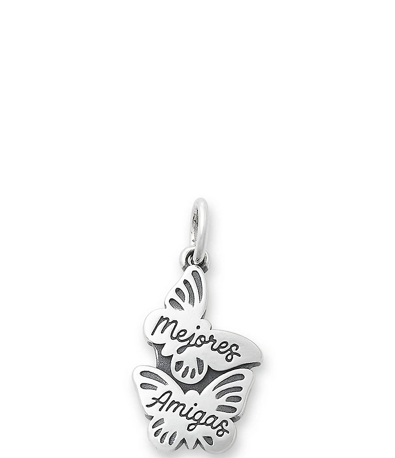 From James Avery, this charm features: An artfully detailed way to express your friendship, these two sterling silver butterflies, shaded with black oxidation for depth, nestle together just like two pals. Scripted with Mejores Amigas (Spanish for best friends), this silver charm is engravable on the back so you can personalize with names or a message for the person who's always there for you. For an especially meaningful gift, choose two and create a matching set that symbolizes your shared connection, wherever life takes you. Sterling silver Approx. 0.69" L x 0.5" W Crafted in America using the world's finest materials. Due to the personalized nature of James Avery bracelets, we are unable to attach charms and customize your design at Dillards.com. Please visit the nearest James Avery store or the James Avery counter at select Dillard's locations to have your new James Avery charm attached at no extra charge. Most local jewelers will also attach the charms for a small fee.