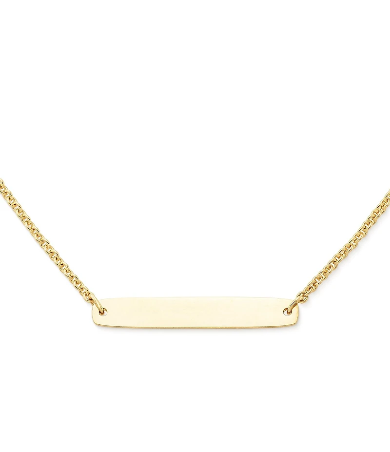 From James Avery, this necklace features: The bar on this engravable necklace is ideal for personalizing with an engraved word or symbol on the front, back or both sides. Crafted in sterling silver or 14K gold, this James Avery design makes a simple, delicate statement on its own and layers beautifully with other necklaces. 14K gold Lobster clasp closure Medium approx. 15" - 17" long Large approx. 18" - 20" long Crafted in America using the world's finest materials
