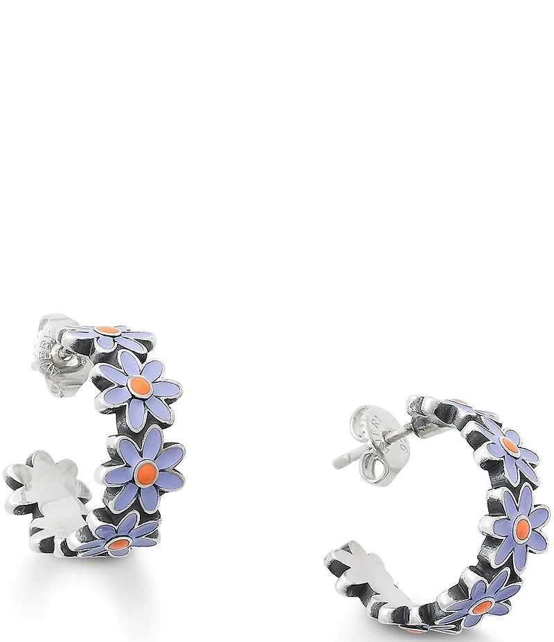 From James Avery, these earrings feature: The Enamel Floral Hoop Earrings expand our Enamel Mini Flower Collection, bringing even more color, joy and playfulness to any look. These sterling silver hoop earrings feature a daisy-chain of pastel blooms to brighten any day or outfit, symbolizing friendship and carefree moments. Choose between two sizes of hoops to wear solo or layer in an earring stack. The colorways and design match back to the charm, ring and stud earrings in the Mini Flower Collection. Sterling silver Pink and yellow, purple and coral, light teal and coral or white and yellow enamel Small is approx. 0.75" L Post closure Crafted in America using the world's finest materials.