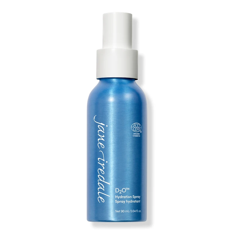 HYDRATION SPRAY D2O. Benefits: Mimics skin's natural moisture to set makeup and create a natural, skin-like finish.. Locks in moisture and makeup for lasting, budge-proof wear.. Distilled with powerful humectants and natural moisturizers.. Hydrates and conditions all skin types.. Especially beneficial for dry and dehydrated skin.. Awarded ECOCERT's Natural and Organic Cosmetic certification.. Key Ingredients: Chamomile has been shown to moisturize and alleviate dryness.. Ylang Ylang helps maintain skin's natural moisture.. Algae Extract has been shown to help prevent moisture loss.. :