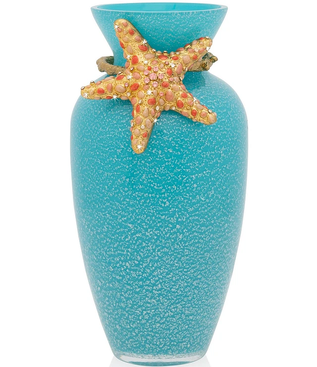 Jay Strongwater Asteria Jeweled Starfish Turquoise Glass Vase