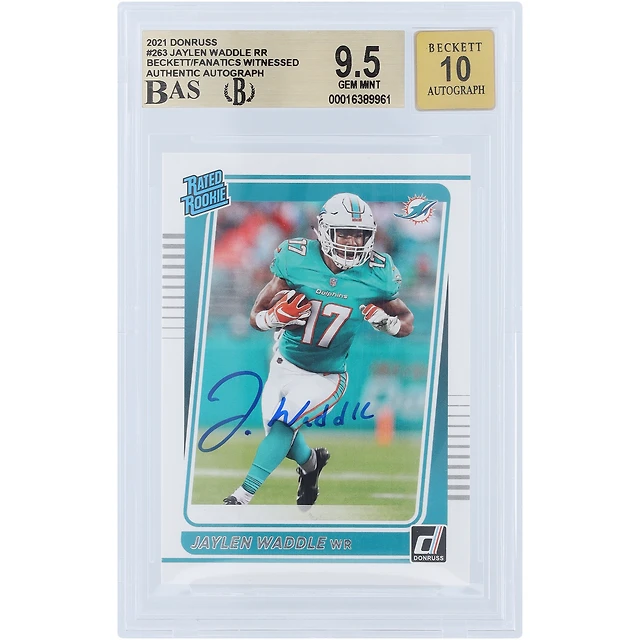 Jaylen Waddle Miami Dolphins Autographed 2021 Panini Donruss Rated Rookie #263 Beckett Fanatics Witnessed Authenticated 9.5/10 Rookie Card