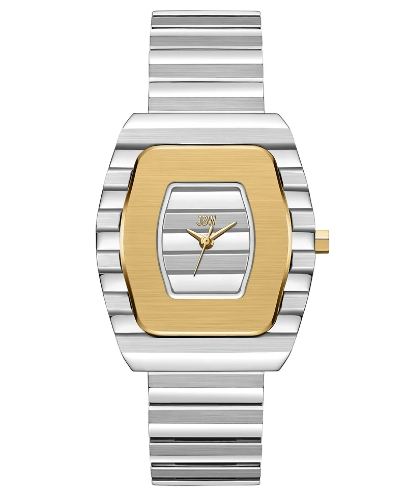 Bold two-tone tones meet a striking rippled case in this Jbw watch, powered by a precision Swiss Ronda movement. A push-button hidden clasp ensures a secure, comfortable fit on the wrist.