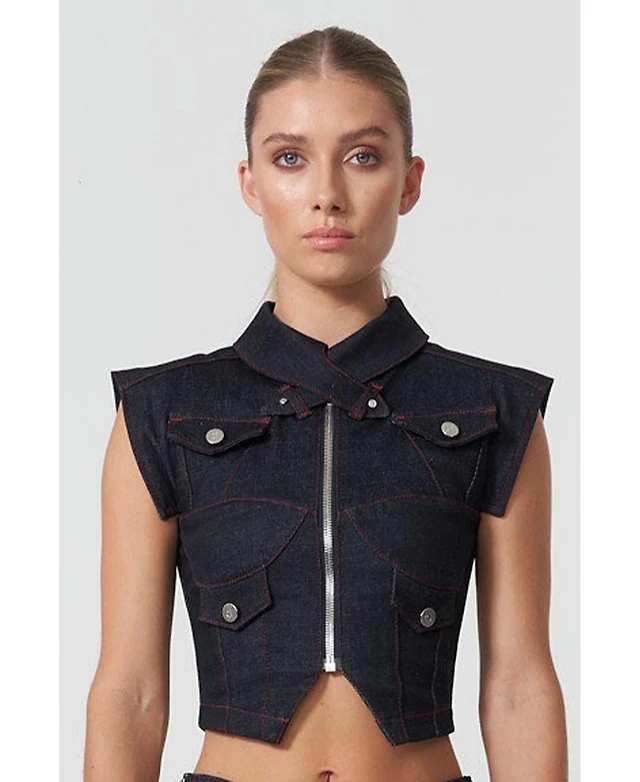 Jendue Women's Vonk Crop Denim Top - Stylish Jean Vest