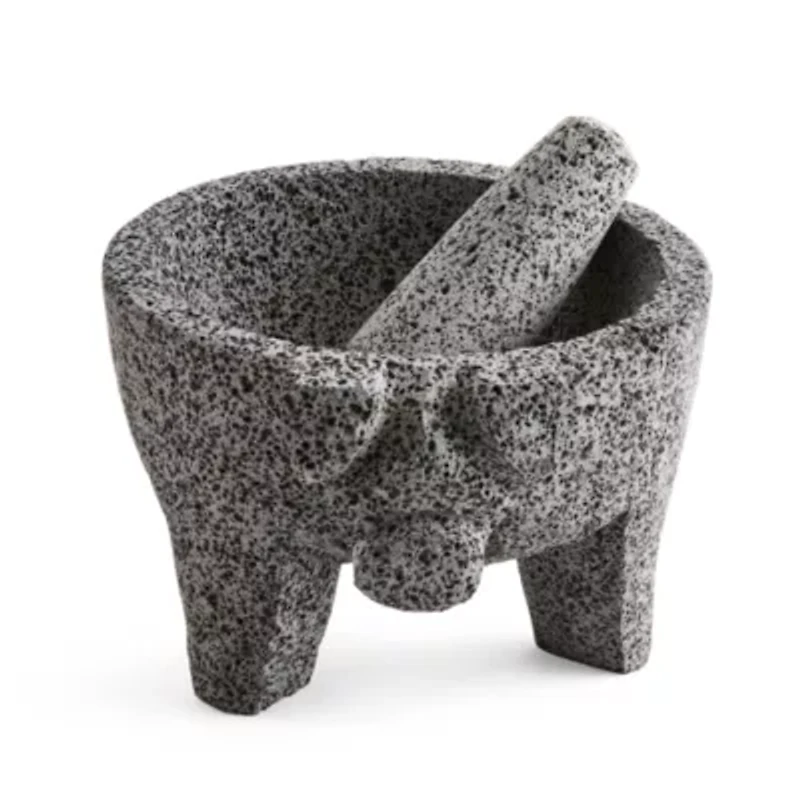 Experience the tradition of authentic cooking with the Jenny Martinez Molcajete. Hand- carved from volcanic stone, this durable two- piece set is perfect for preparing guacamole, salsa, and spices. A timeless kitchen essential that brings flavor, culture, and heritage to every meal.
