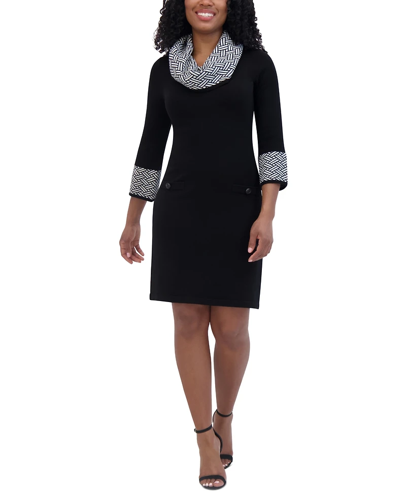 Jessica Howard Petite Cowl-Neck Contrast-Trim Sweater Dress