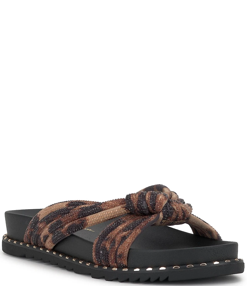 Jessica Simpson Cilleva Leopard Rhinestone Knotted Slide Sandals