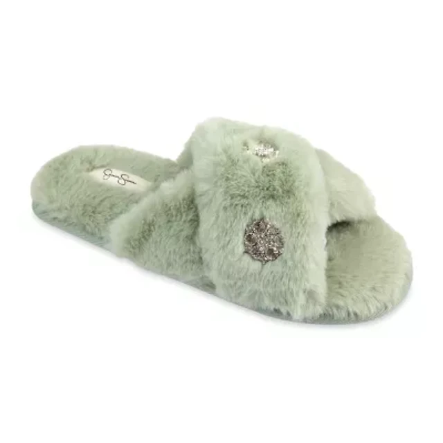 JS Jessica Simpson Embellished Plush Womens Slip-On Slippers