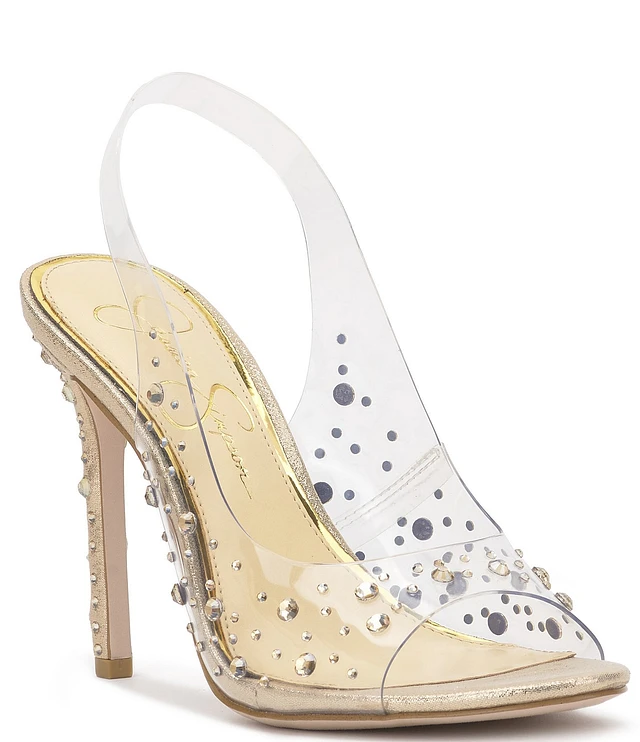 Jessica Simpson Jaisey Clear Rhinestone Peep Toe Slingback Dress Pumps