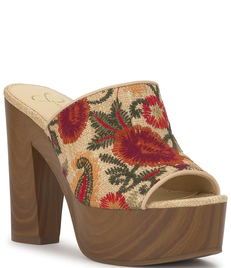 Jessica Simpson Shelbie Embroidered Raffia Block Heel Platform Slide Sandals