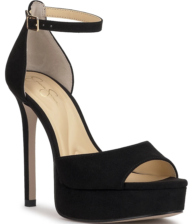 From Jessica Simpson, the Sohilea Platform Dress Sandals feature: Faux suede upper Ankle strap with buckle closure Designed with premium memory foam to provide cushioned support at key pressure points Synthetic lining Rubber outsole Approx. 1.2" platform height Approx. 4.9" heel height Imported.