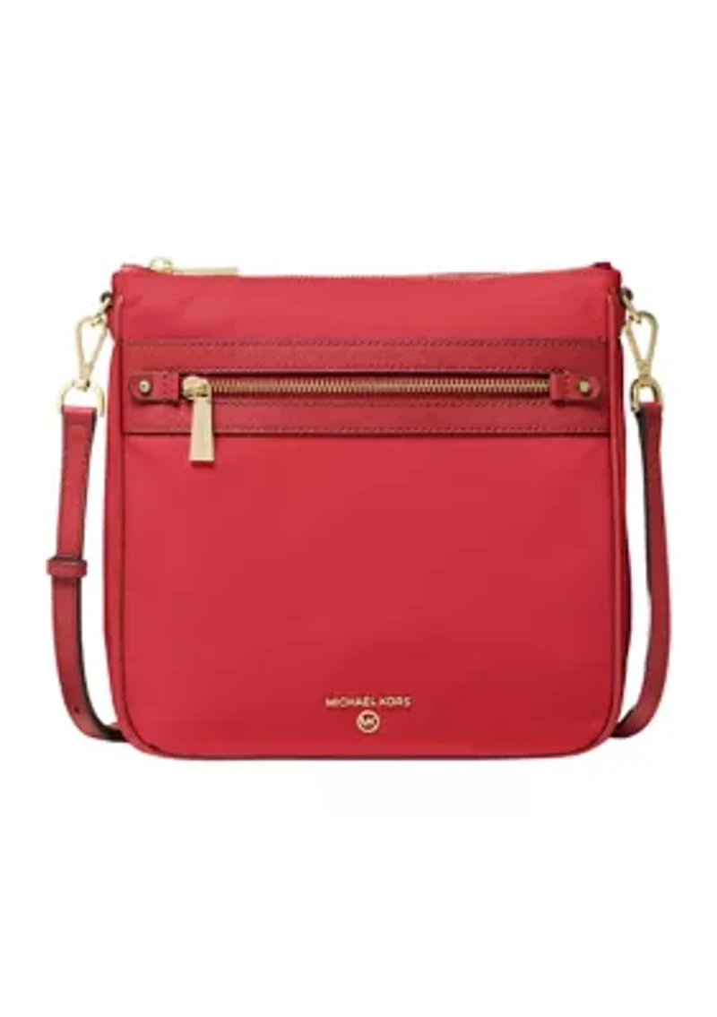 Whether you're on the go or laying low, MICHAEL Michael Kors' Jet Set Charm Large Crossbody is a stylish contender for carrying your essentials. Zip closure Exterior: 1 back snap pocket, 1 front zip pocket Interior: 1 back zip pocket, 4 front slip pockets Adjustbale crossbody strap with 21" to 23" drop Imported Product Specifications 9.75" W x 9.25" H x 2.5" D Material & Care Nylon Clean with a soft cloth