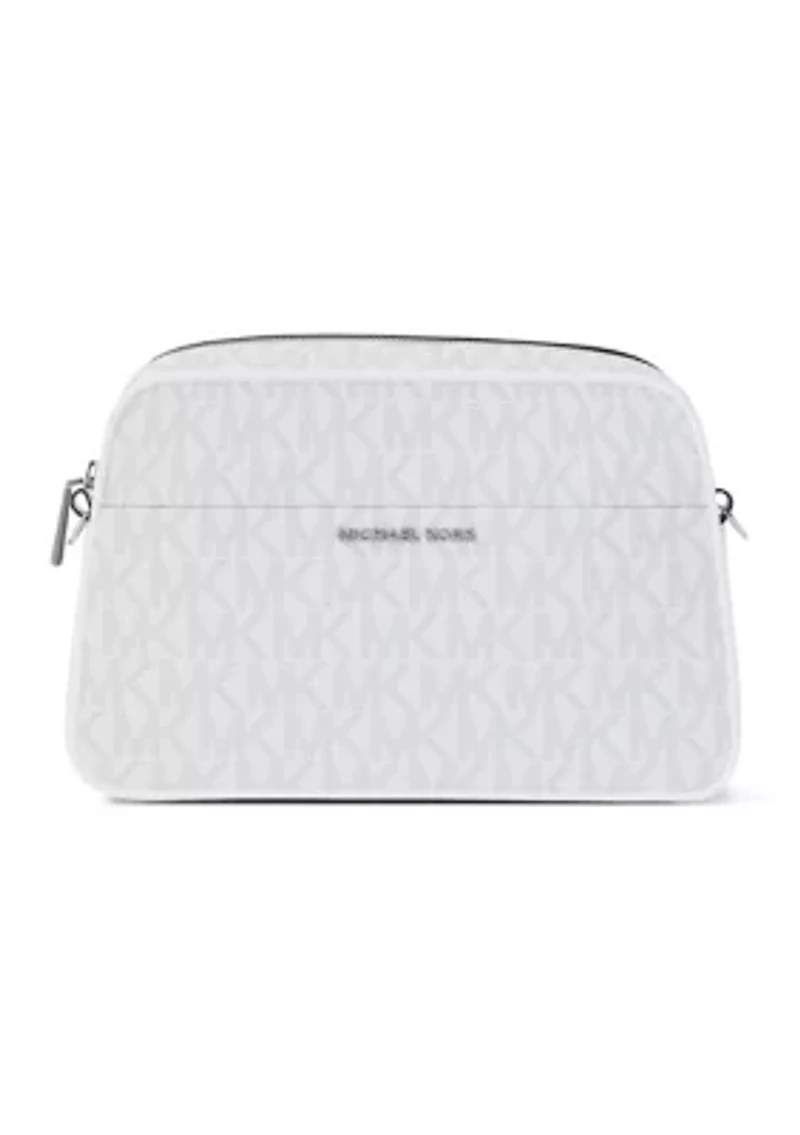 This stylish accessory from MICHAEL Michael Kors offers convenient storage with its front and back slip pockets. Crafted from durable PVC, it features an adjustable and removable strap for versatile wear, while its compact dimensions make it perfect for everyday use. Removable strap with 19.5"-21.75" drop Exterior: 1 front slip pocket Interior: 1 back slip pocket Imported Product Specifications 8.5" W x 5.5" H x 3" D Material & Care PVC Wipe clean