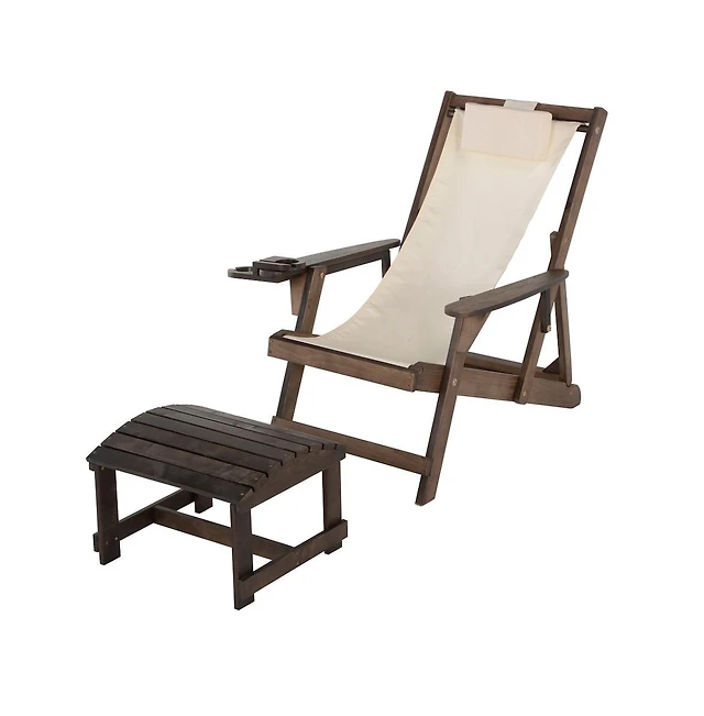 Jiallo Canvas Sling Chair With Cup And Wine Holder And Ottoman