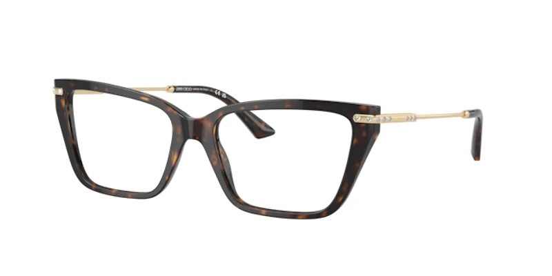 Elevate your fashion and optometry standards simultaneously with jimmy choo jc3002b optical frames. The cat eye shape, combined with a shiny havana finish, adds a touch of glamour to these glasses. Crafted from acetate, the frame is durable and lightweight. Strass detailing adds an extra touch of elegance to these stunning shades. These frames are not just a fashion statement but also a practical choice for everyday wear. Available with prescription lenses.