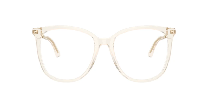 Elevate your eyewear collection with the jimmy choo jc3060 opticals. Featuring a timeless panthos eyeglasses silhouette, these jimmy choo frames are crafted from ethereally light transparent plastic in a brown/tan hue. The slim metal temples are adorned with a laser-engraved jimmy choo logo, adding a touch of understated elegance. Designed with a standard bridge, they seamlessly combine sophistication with comfort.