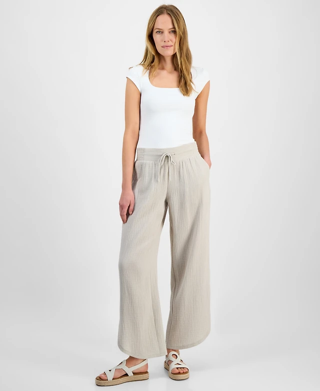 Jm Collection Women's Cotton Tulip-Hem Gauze Pants, Exclusively at Macy's