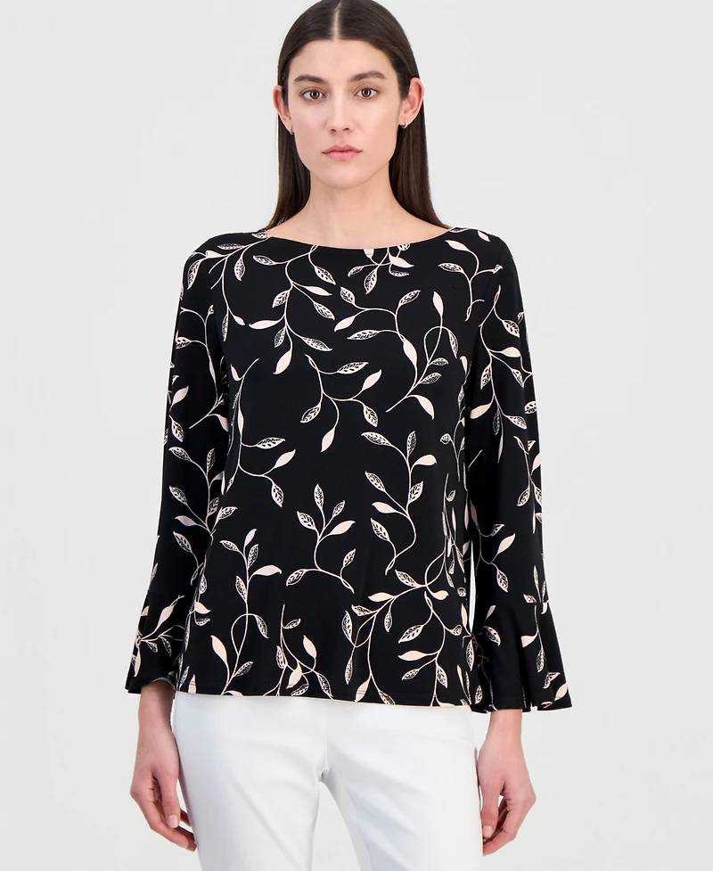 Jm Collection Women's Printed Boat-Neck Bell-Sleeve Top, Macy's Exclusive
