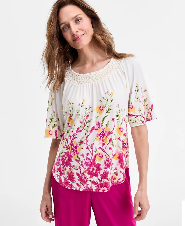 Jm Collection Women's Printed Scoop-Neck Short Sleeve Top, Macy's Exclusive