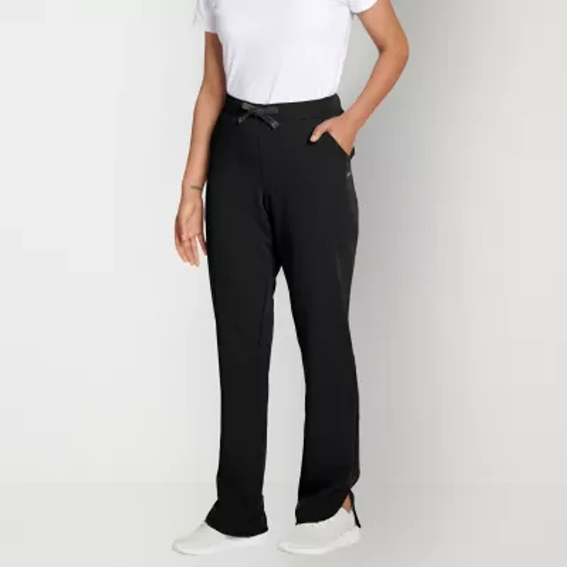 Jockey scrubs ladies petal tapered pant. 32" length. 4 pockets- 3 side pockets and 1 side seam zipper security pocket. Half elastic back and front drawstring waist. Curved hem vent.