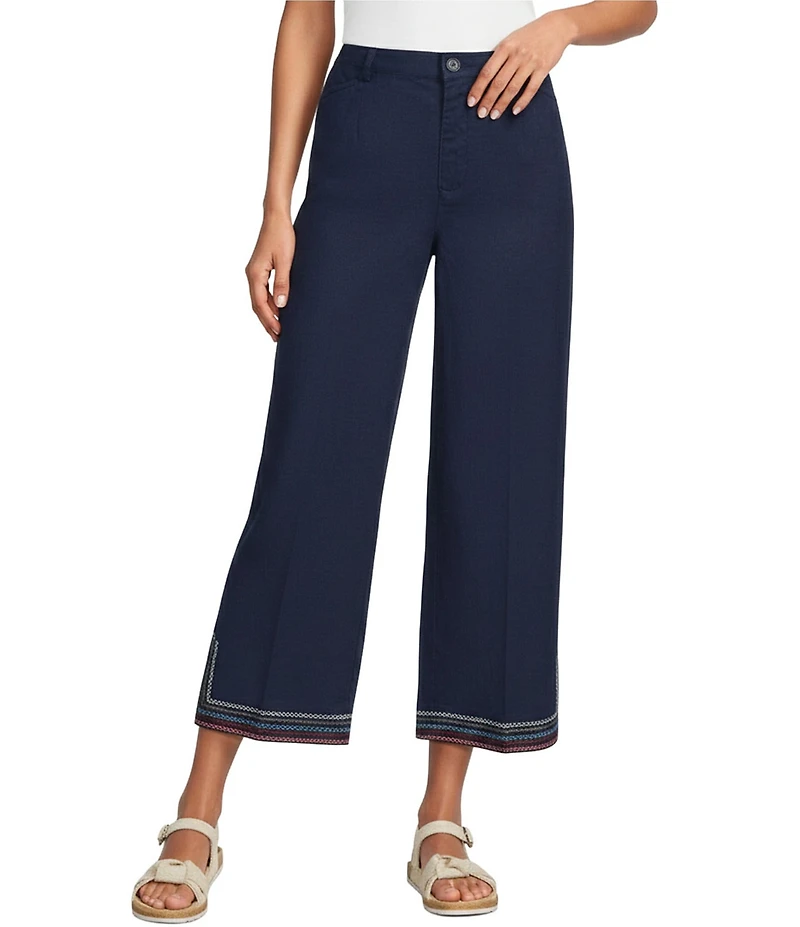 John Mark Linen Blend Straight High Rise Embroidery Pants in Franklin, TN