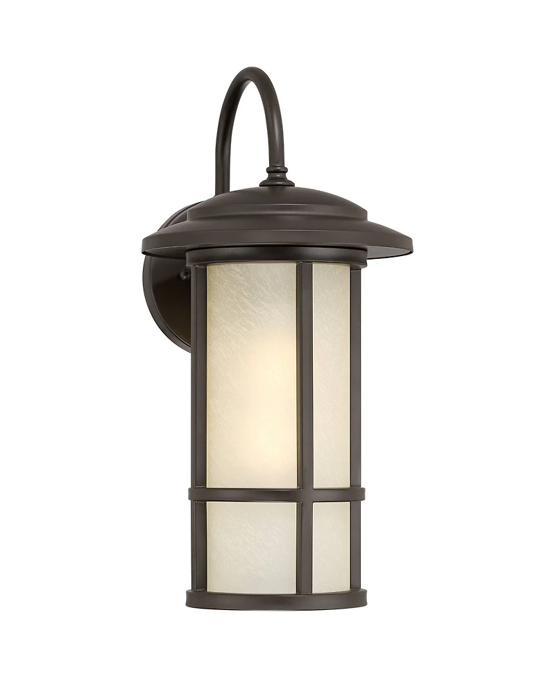 Featuring a classic profile that can complement traditional and contemporary decor, this stunning outdoor wall light features an etched amber glass shade. The John Timberland design is finished in an oil-rubbed bronze hue. A beautiful lighting solution to brighten any outdoor space.