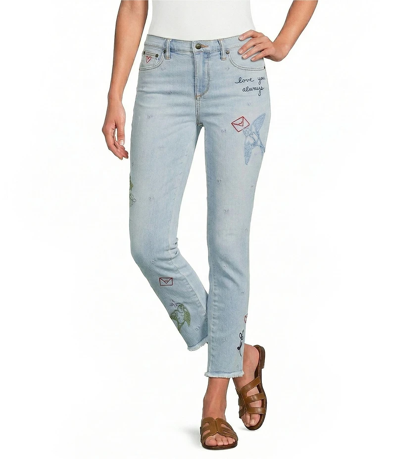 JOHNNY WAS Jasmine Honey Denim Embroidered Cropped Skinny Jeans