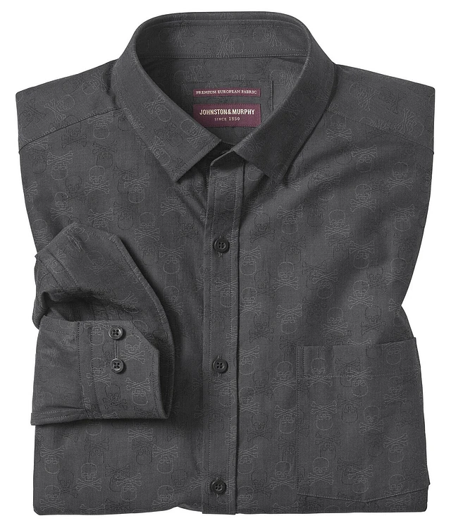 Johnston & Murphy Jacquard Skull Print Long Sleeve Woven Shirt