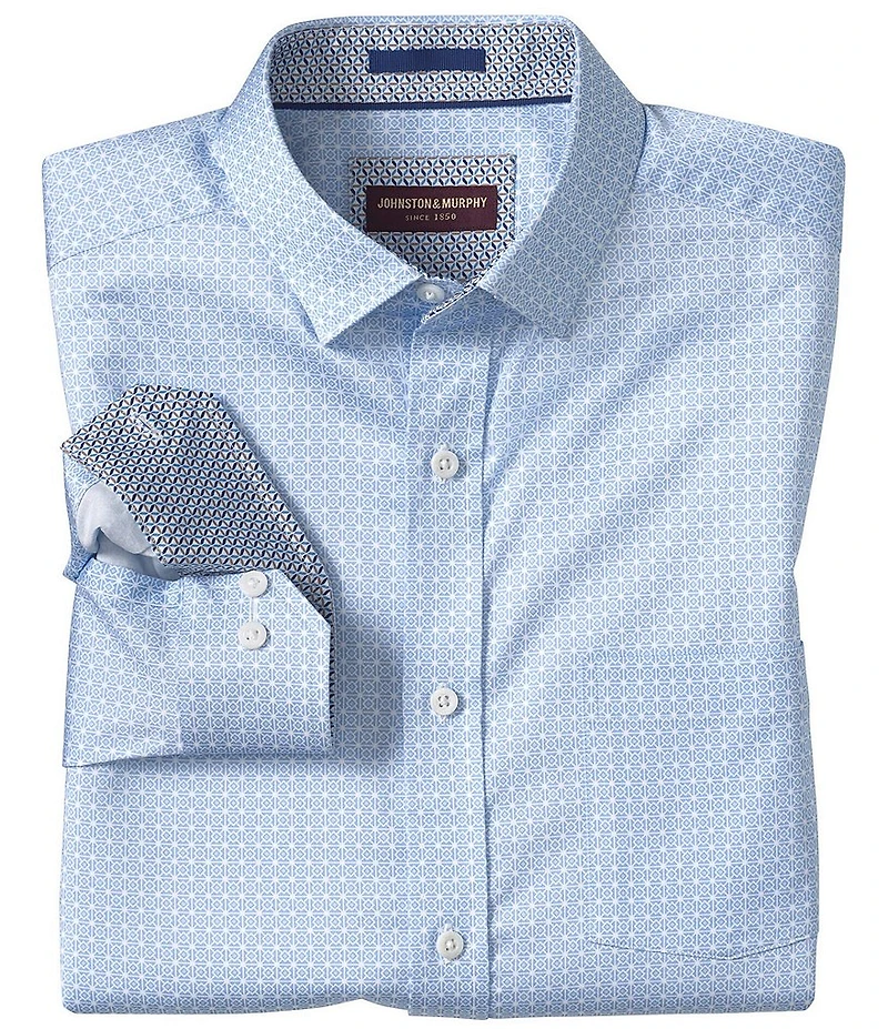 From Johnston & Murphy, this shirt features: Allover diamond print Hidden button-down collar Long sleeves Button-front closure Pocket at left chest Shirttail hem Stretch fabric Cotton/spandex Machine wash/tumble dry Imported.