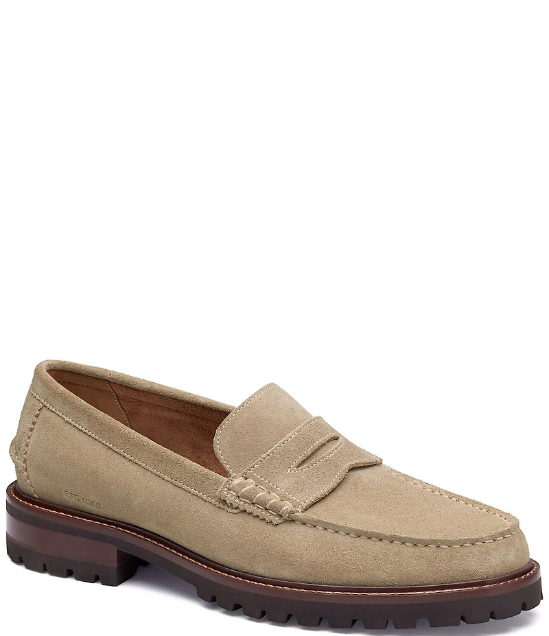 From Johnston & Murphy, the Men's Collier Suede Penny Loafers feature: Suede upper Unlined Micro suede footbed covering Molded, TRUFOAM® footbed for ultra-light rebound comfort Lightweight EVA midsole Lightweight EVA outsole Imported
